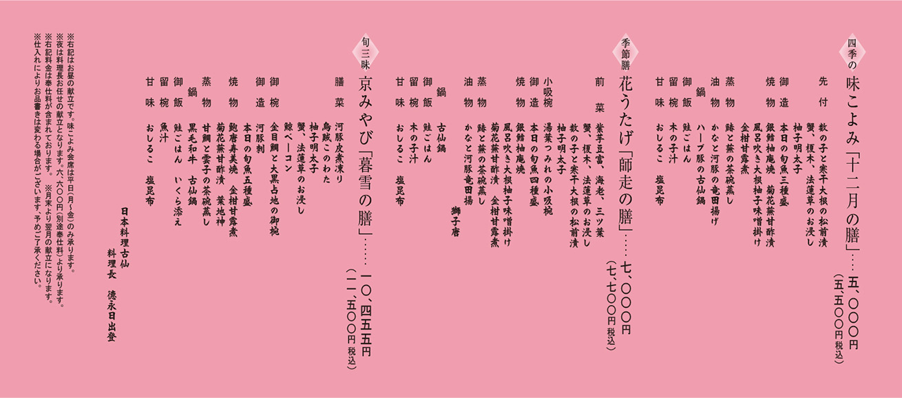 ※味こよみ会席は平日の(月~金)お昼のみ承ります。