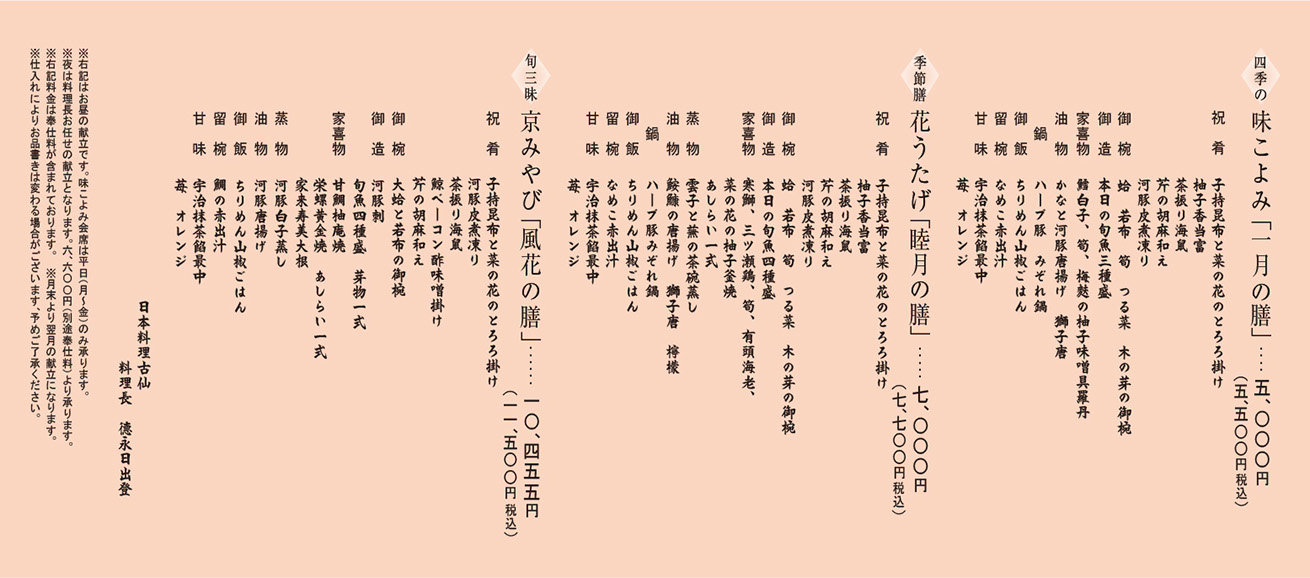 ※味こよみ会席は平日の(月~金)お昼のみ承ります。